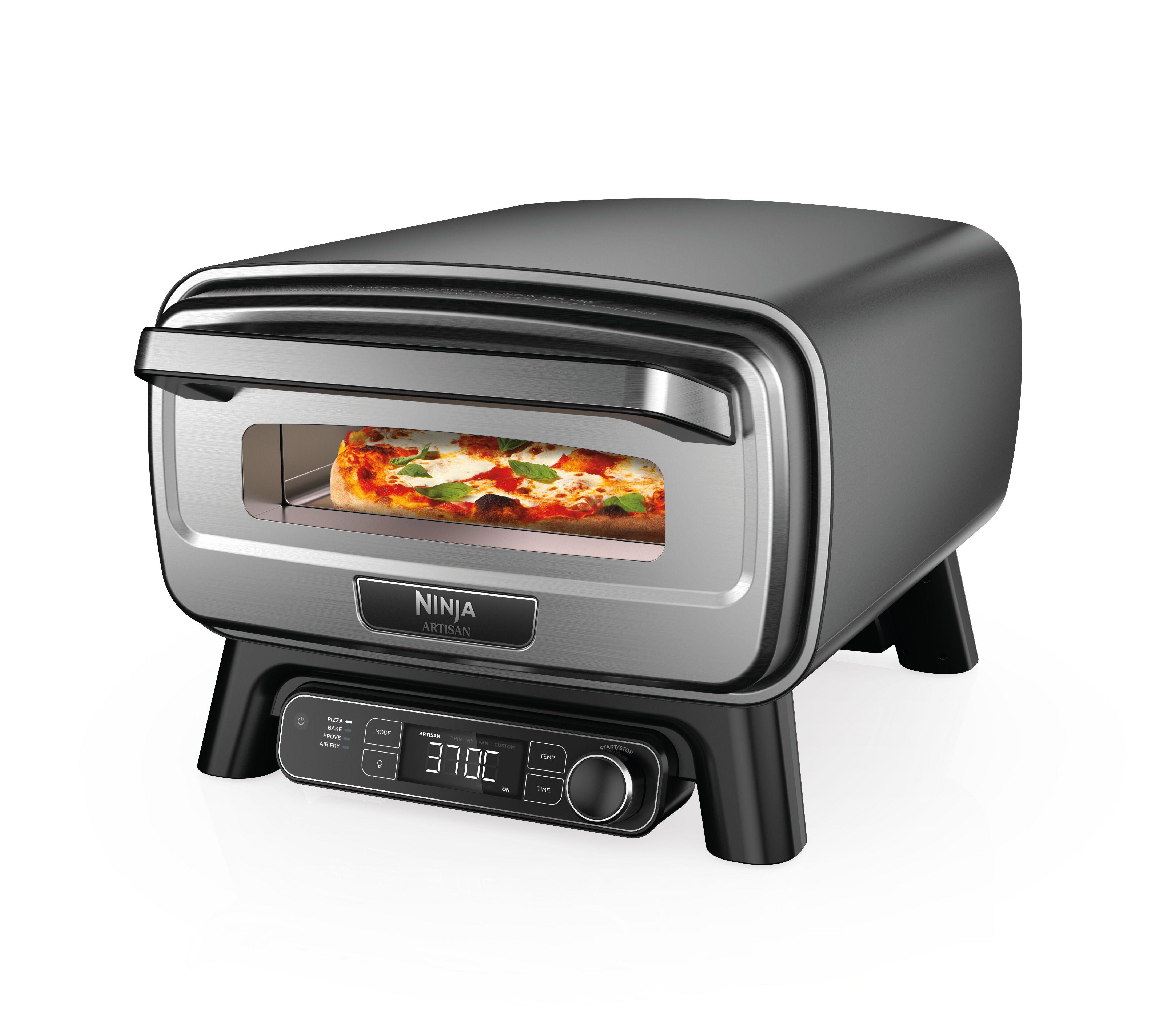 Le four à pizza électrique d'extérieur et friteuse à air chaud 4 en 1 Ninja Artisan est ton multitalent pour la cuisine d'extérieur - avec les fonctions Pizza (pizza), Bake (cuisson), Air Fry (friture à air chaud) et Prove (faire lever) ainsi qu'un plateau à pizza pour insérer et retirer facilement les pains et les pizzas.