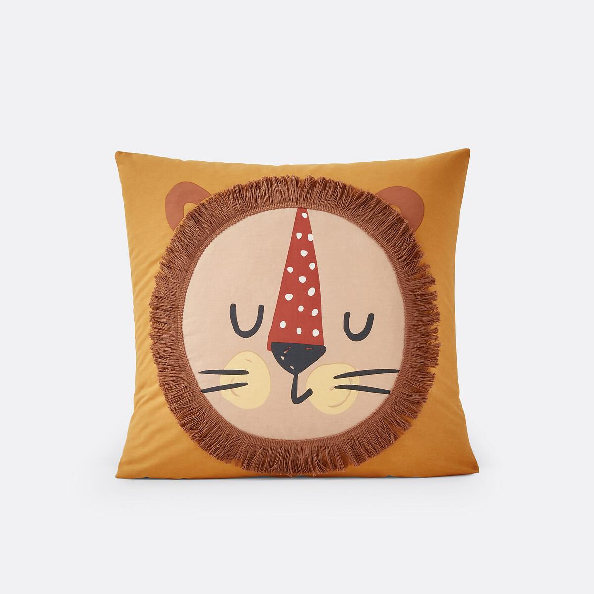 - Recto imprimé tête de lion avec finition tuft pour la crinière