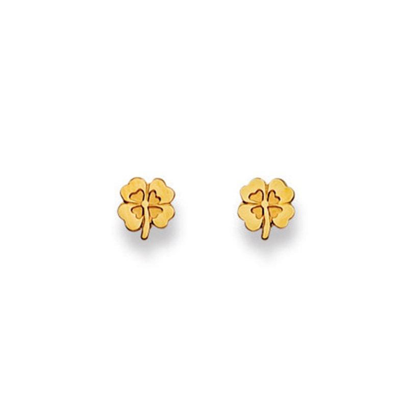 MUAU Schmuck, Clous d'oreilles trèfle or jaune 750, 5mm