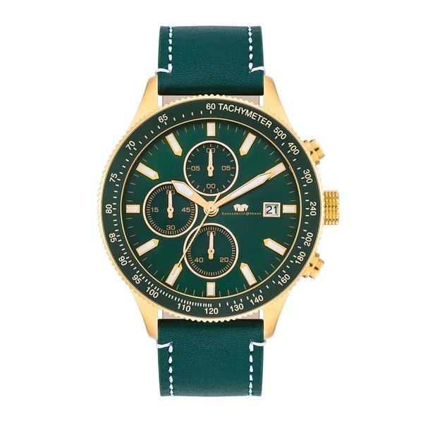 Avec la date, le chronomètre, 3 numéros auxiliaires et la lunette rotative avec tachymètre, le Watchmanufaktur Rhodewald & Söhne combine les fonctionnalités de garde-temps les plus populaires dans un chronographe moderne. Le boîtier robuste en acier inoxydable avec revêtement IP résistant aux rayures placent les trois totaliseurs de l'arrangement classique Tricompax, associé à des indices de ligne simples et à des pointeurs de flèche lumineuse, la conception noble est arrêtée par une bracelet authentique avec une couture contrastante et une boucle d'épingle pratique. La vie intérieure est également très forte: un mouvement de quartz de haute qualité garantit la meilleure précision.