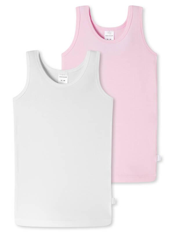 Maillots de corps pour filles dans un double pack pratique, uni en blanc et rose