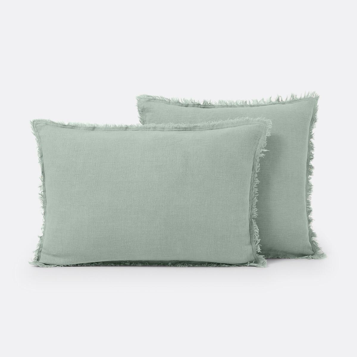 La housse de coussin Linange est confectionnée en lin lavé, offrant une texture douce et accueillante. Son design avec des bords effilochés ajoute une touche d'élégance décontractée à tout espace de vie.