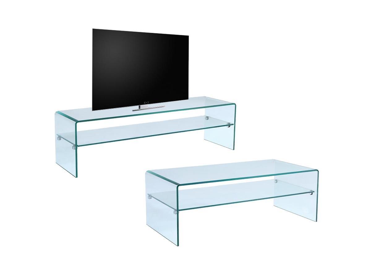 Vente-unique Ensemble Table basse + Meuble TVVerre trempé Séjour design STILEOS