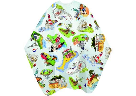 Einmal um die Welt geht es mit diesem liebevoll illustrierten Kinderumhang. Finde den Bergsteiger in Österreich, beobachte wilde Tiere in Afrika und wo hat sich nur der Delfin versteckt? Mit Kid?s World wird der Friseurbesuch zur spannenden Entdeckungsreise. ? atmungsaktiv ? 2-fach Hakenverschluss ? Kinder-Grösse 90 x 125 ? 100 % Polyester