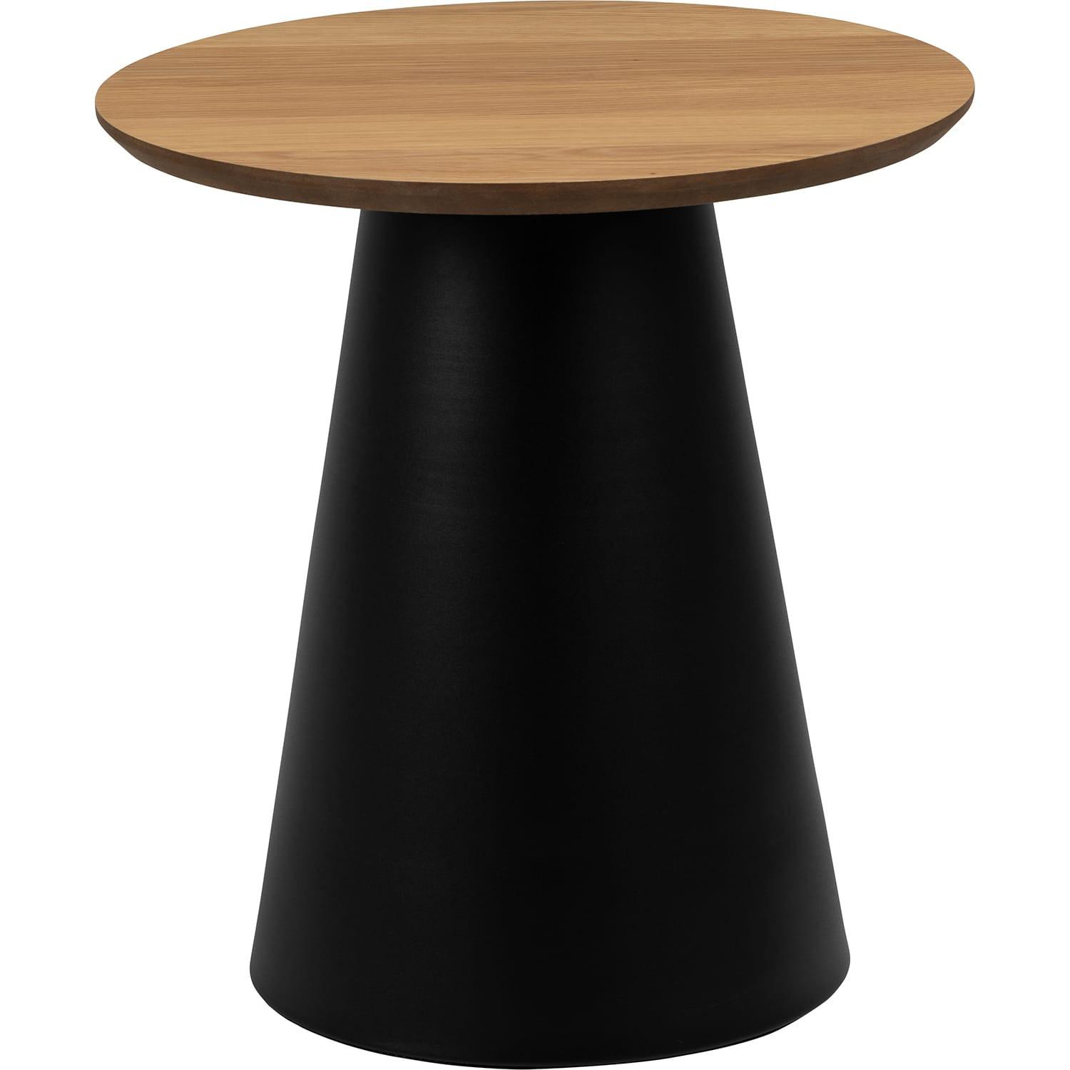 Design moderne avec des formes géométriques Plateau de table en placage de chêne laqué Base de la colonne en acier noir, rugueux et revêtu par poudre Certifié FSC pour un design durable Placage chêne laqué mat PU, piètement noir mat rugueux acier revêtu par poudre Protection du sol par un anneau en plastique Capacité de charge maximale de 20 kg