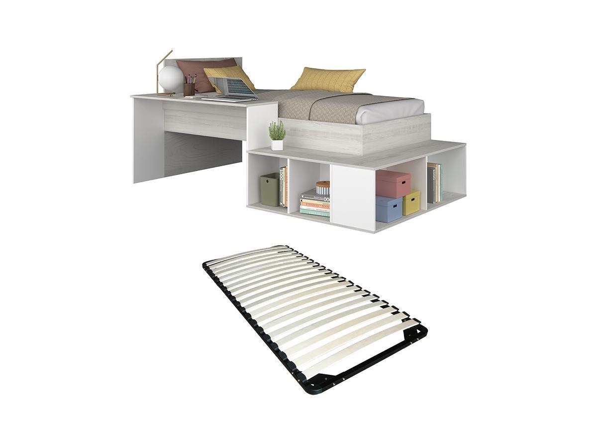 Vente-unique Lit combiné 90 x 200 cm avec rangements et bureau - Coloris : Naturel et blanc + Sommier - RIGALI