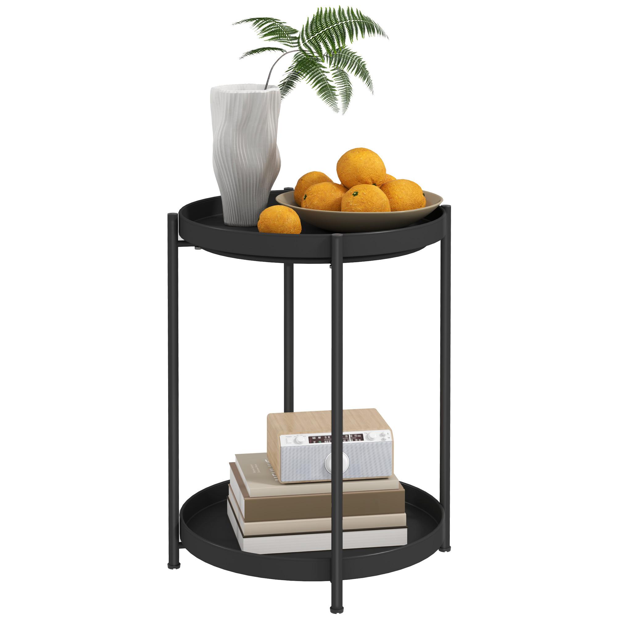 Avec la table d'appoint HOMCOM, vous apportez un mélange parfait de style et de fonctionnalité dans votre maison. Cette table basse compacte offre une étagère à deux niveaux, idéale pour ranger des livres et d'autres objets, et est fabriquée à partir d'un cadre en métal durable avec un revêtement résistant à l'abrasion. Grâce aux repose-pieds réglables, la table de chevet reste stable sur n'importe quelle surface et est idéale pour différentes pièces et styles d'ameublement.