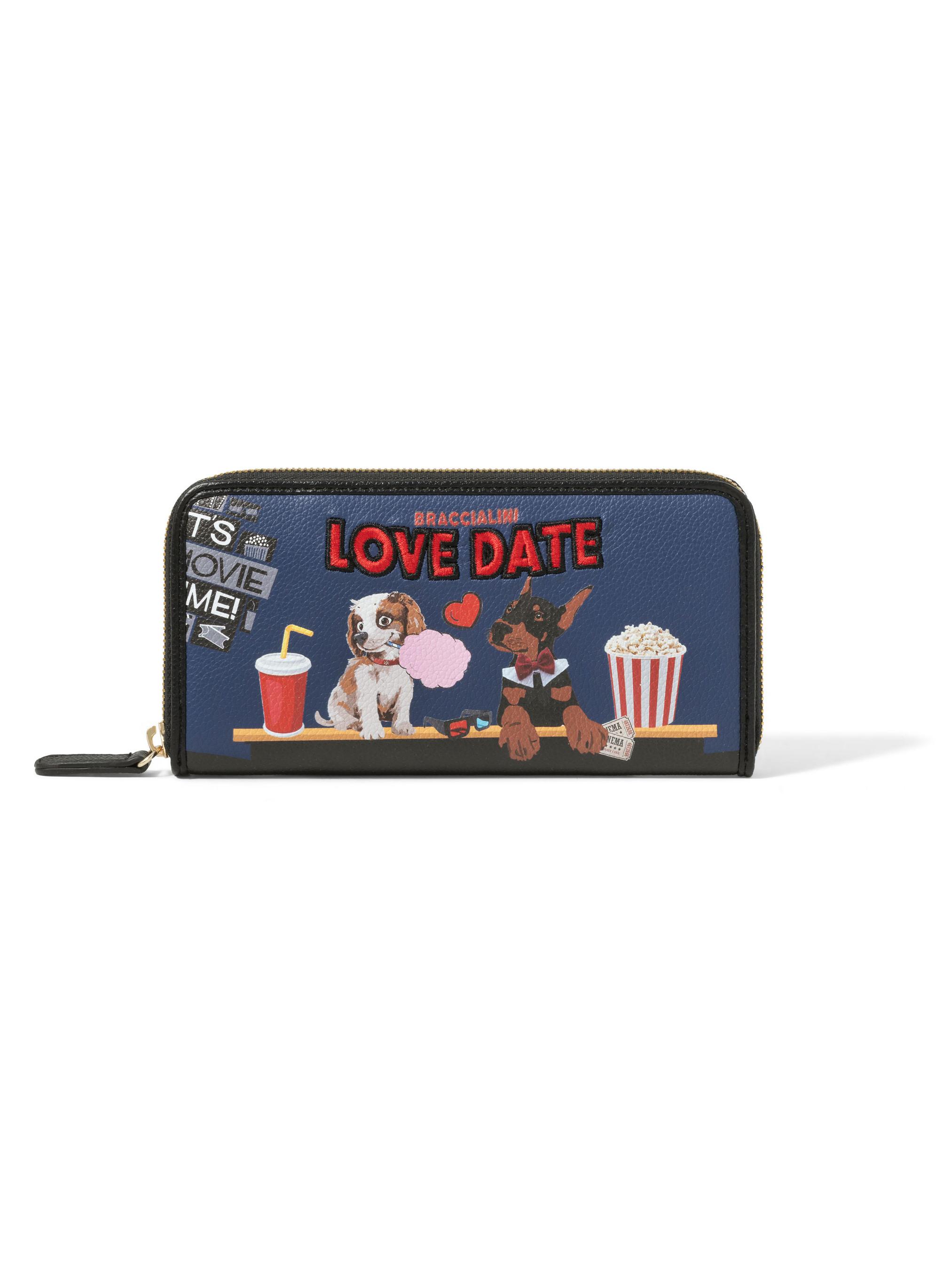Ce portefeuille zippé présente un design ludique "Love Date" avec deux chiens profitant d'une soirée cinéma. Le portefeuille est conçu pour la praticité et le style, offrant amplement d'espace pour les cartes, l'argent liquide et les pièces de monnaie.