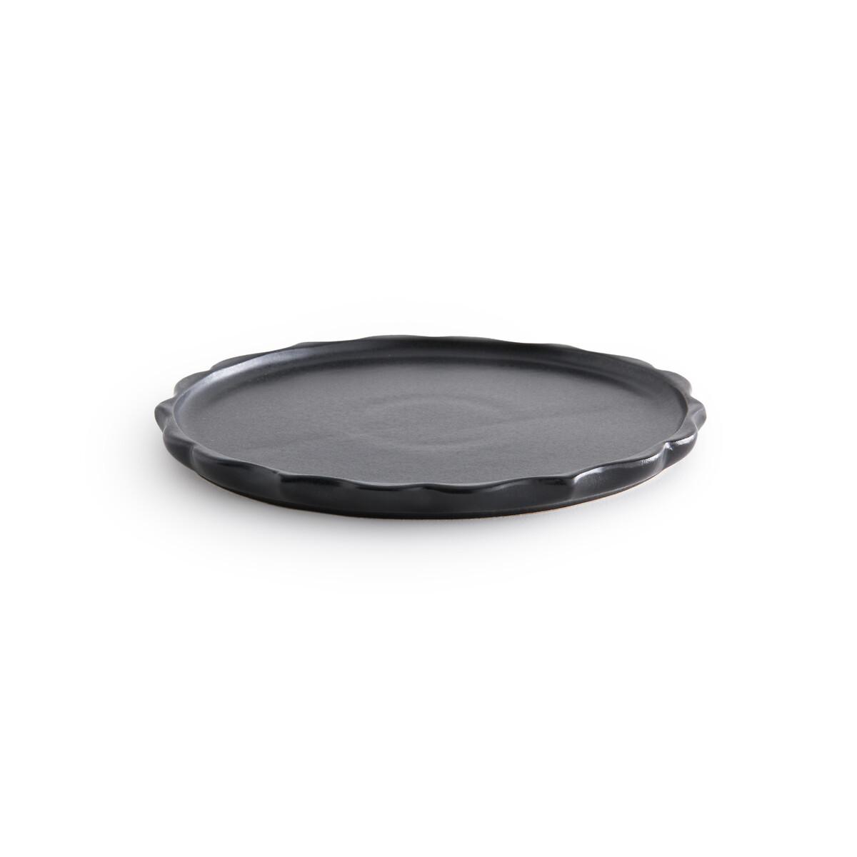 Pureté des lignes et profondeur de la couleur. Avec leur finition festonnée et leur aspect délicatement moucheté, ces assiettes cultivent un esthétisme sobre et élégant. Fabriquée artisanalement au Portugal, chaque pièce est unique.