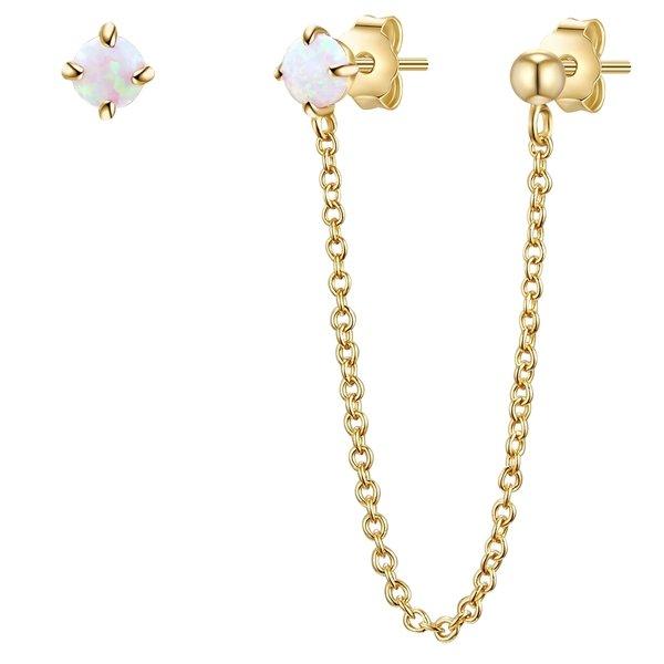 Vous aimez les boucles d'oreilles surtout extravagantes et flexibles? Ensuite, vous ne pouvez pas résister à cet ensemble de l'étiquette Munich. Deux bouchons sont connectés à une chaîne délicate et peuvent être combinées librement avec une troisième bouchon unique: vous avez trois trous d'oreille et portez le réglage complètement sur un côté ou que vous portez la double prise d'une part et la prise unique de l'autre. côté. Fabriqué en argent sterling 925 et raffiné d'or jaune chaleureux, les bouchons reçoivent une touche mystérieuse par deux opales (synthé.). Une pièce informatique pour les fashionistas!