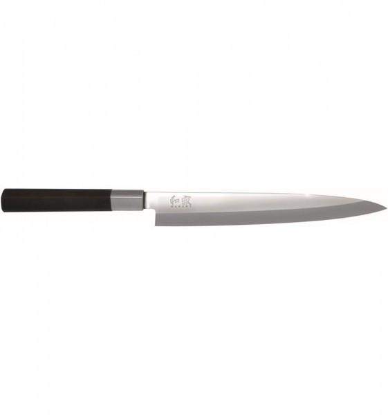 Les couteaux KAI Wasabi Black sont un cadeau idéal pour les personnes qui aiment cuisiner ou griller. Bien sûr, le cuisinier ou le maître du gril peut également se présenter avec ce grand couteau japonais. Le couteau KAI Wasabi Black Yanagiba en détail : La série Wasabi Black tire ses origines de la cuisine de cantine japonaise. Grâce à une combinaison réussie de fonctionnalité et d'affûtage constants, d'une qualité de matériau robuste et d'une conception fonctionnellement réduite, les nombreuses formes de lames de la série sont conçues pour une utilisation continue simple et convainquent par un rapport qualité-prix impressionnant.