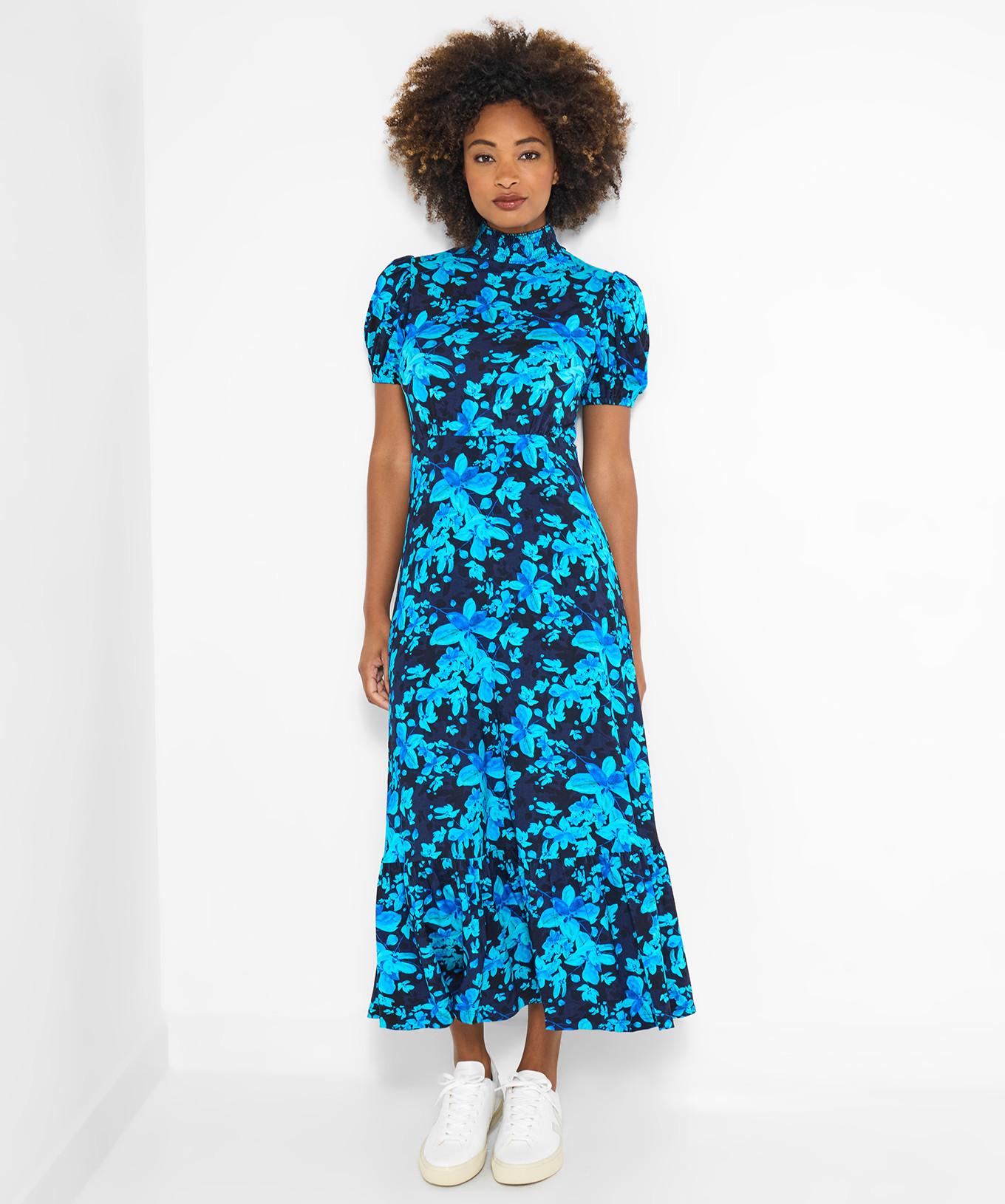 Joe Browns, Robe Jersey Manches Bouffantes Motif Floral Col Montant