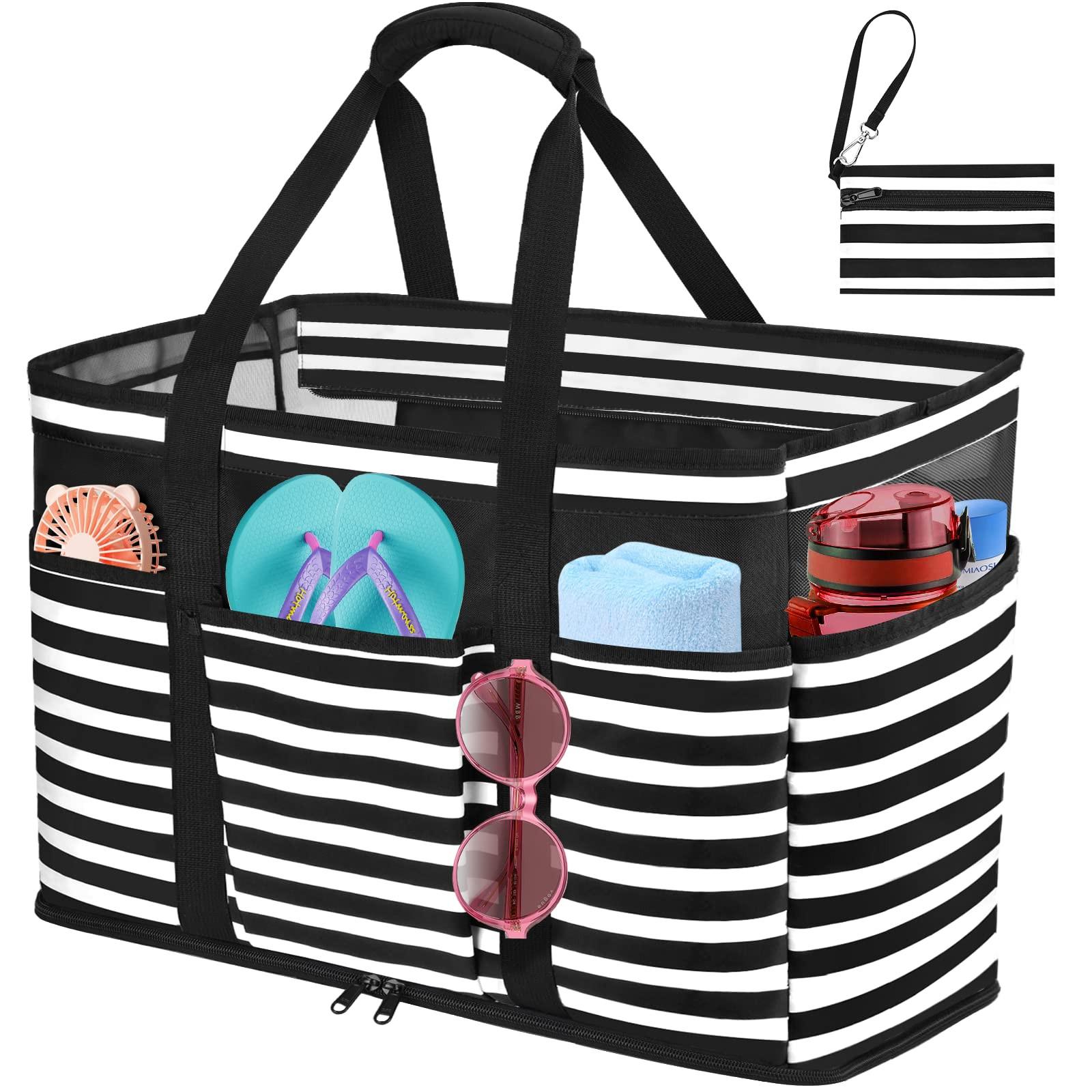 Only-bags.store Grand sac de plage rayé imperméable avec fermeture éclair