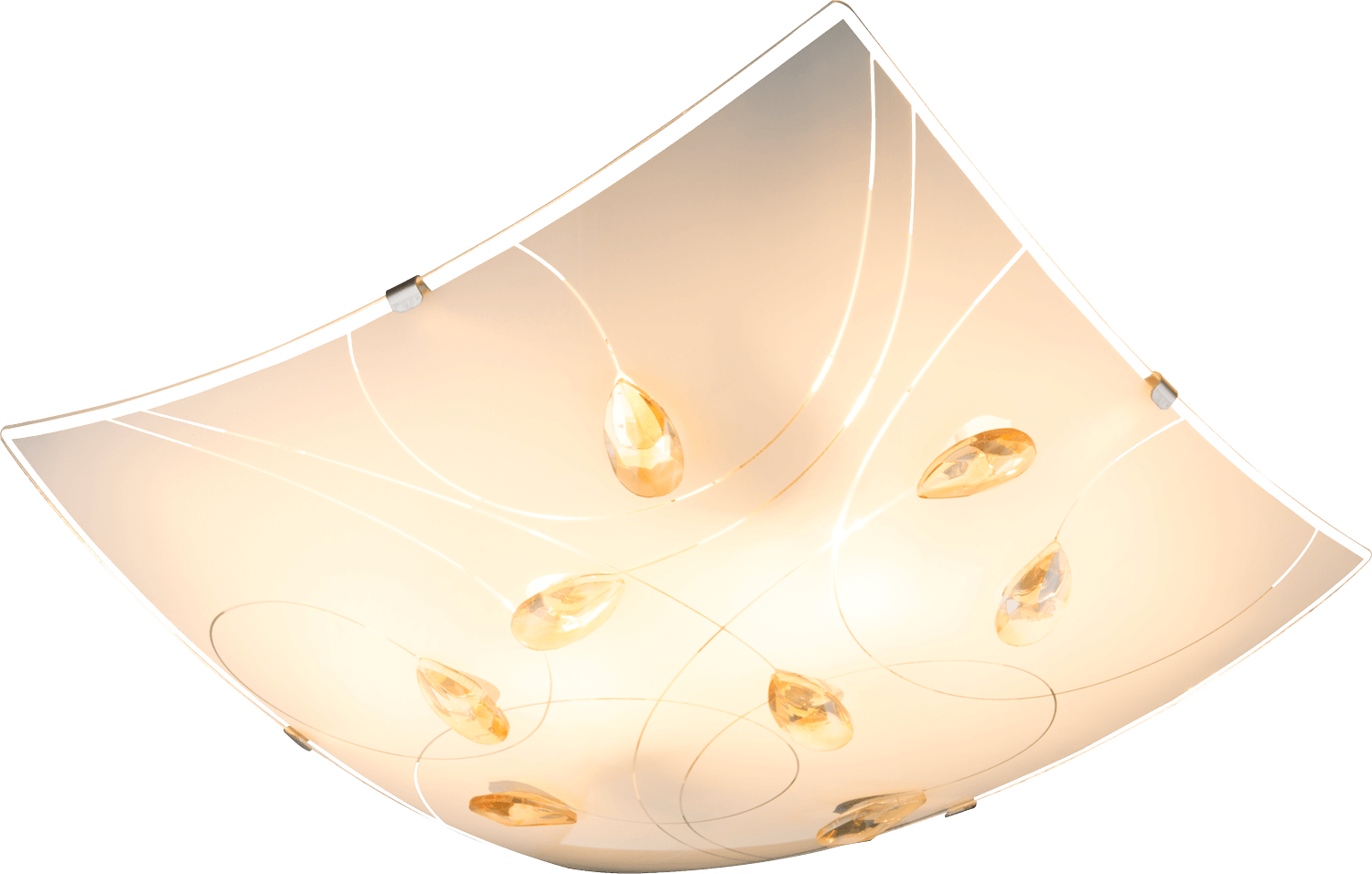 Le plafonnier carré (30x30 cm) moderne mais en même temps classique nommé Taveuni offre un design intemporel. L'association d'un élégant verre dépoli et de cristaux à l'aspect ambré vous offre une lumière unique. Les deux douilles E27 intégrées vous offrent la possibilité de choisir vous-même l'illuminant (max. 60W) et ainsi de définir vous-même l'intensité lumineuse et la couleur de la lumière. Cependant, l'illuminant sélectionné doit être une lampe en forme de goutte.