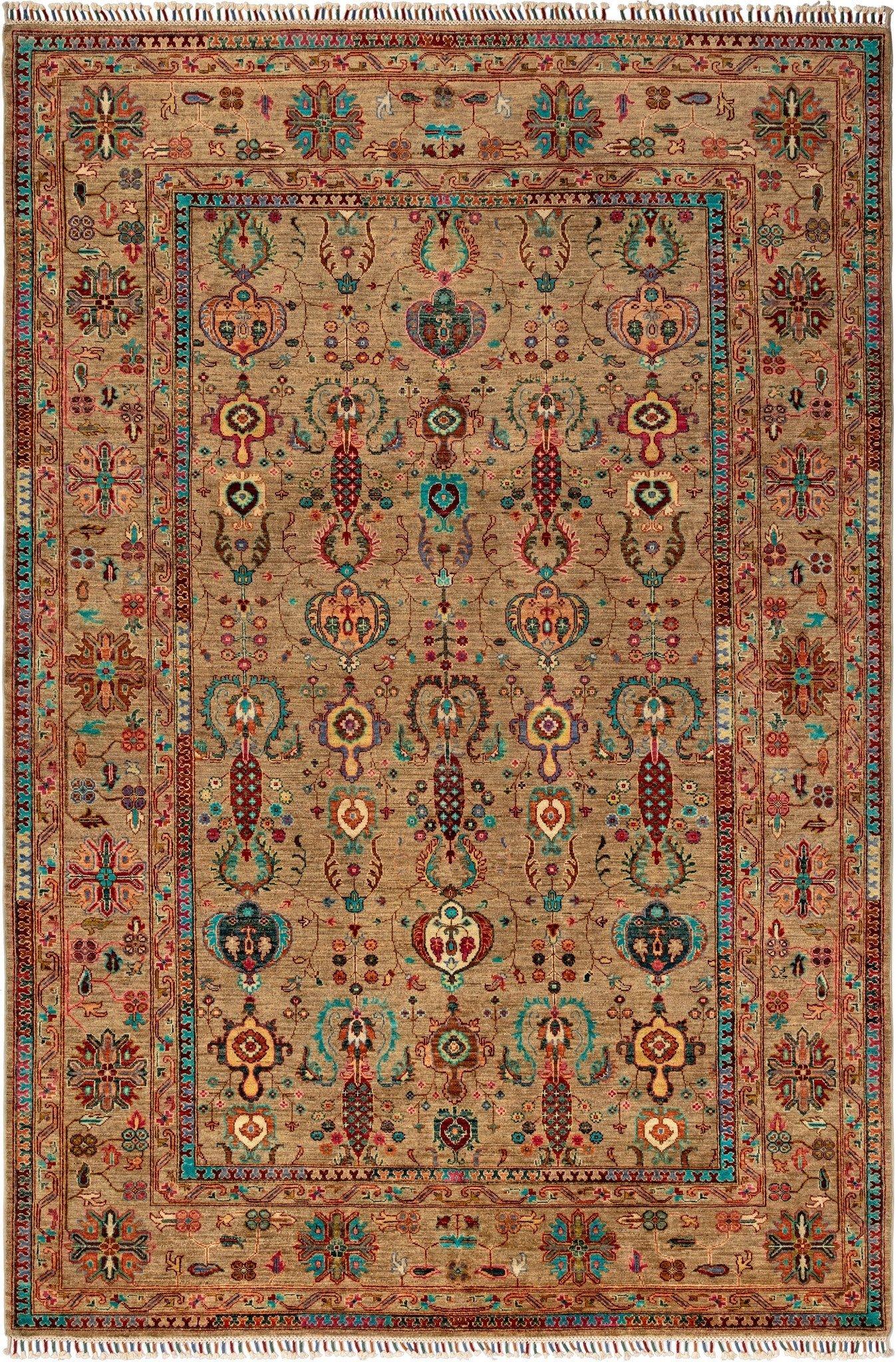 Matériau du poil : de haute qualité et très fin Tapis noué à la main avec un motif turkmène d'Afghanistan avec des couleurs végétales
