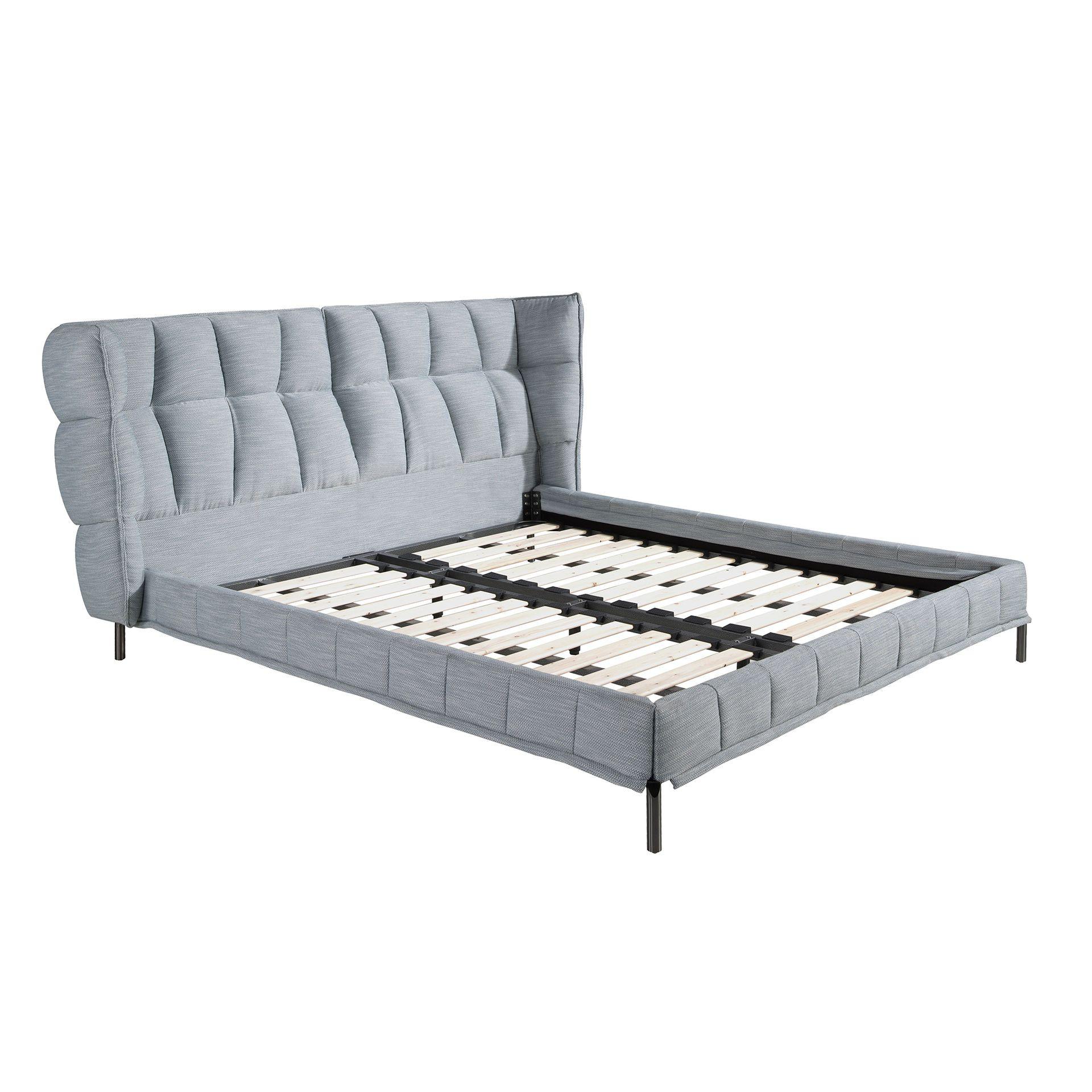 Lit double au design moderne avec une tête de lit originale et une structure en tissu gris bleu clair, et des pieds en acier inoxydable poli foncé. Une pièce maîtresse pour votre chambre à coucher avec laquelle vous ajouterez un style élégant et accueillant.