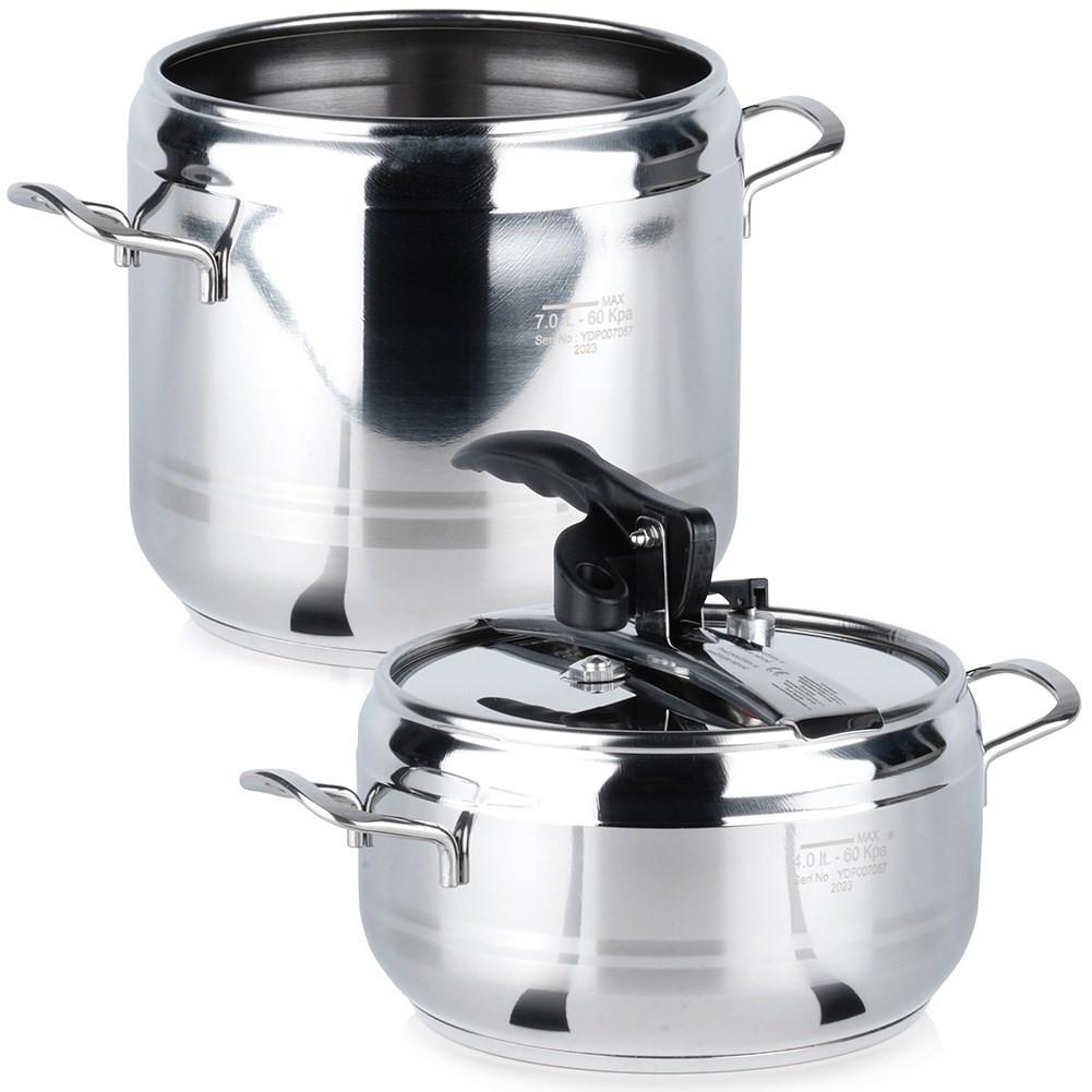 Orion Lot de 2 autocuiseurs : 4 & 7L, inox, soupapes de sécurité