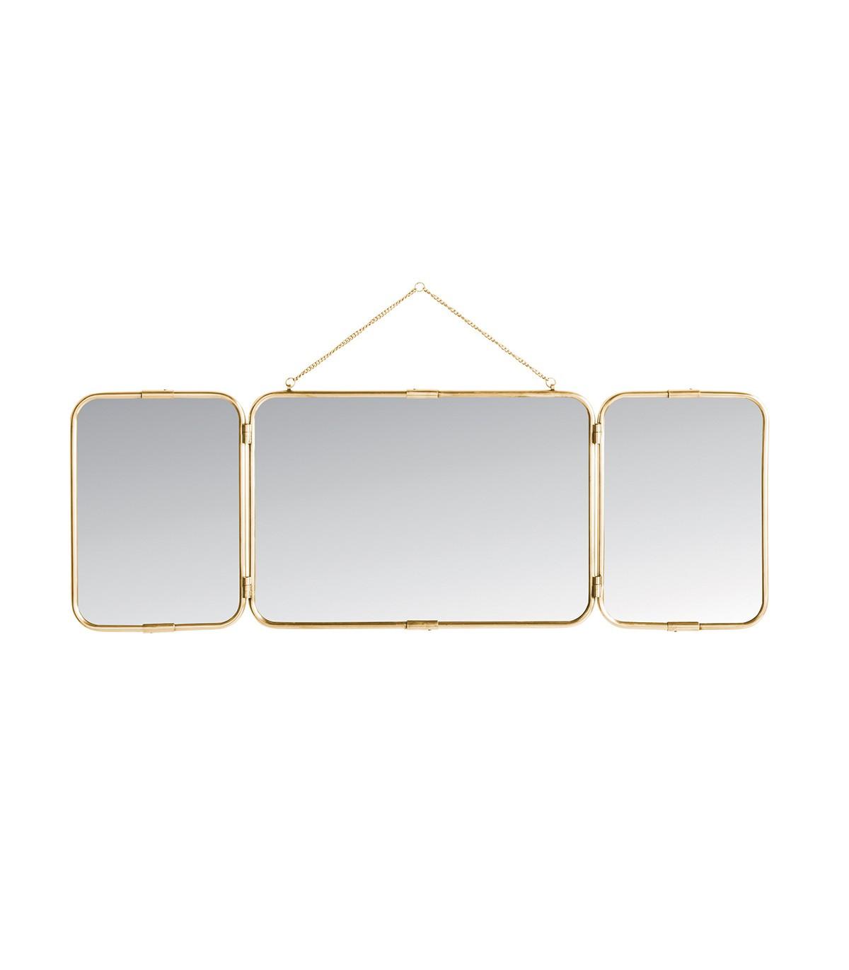 Besoin d'un nouveau miroir design et pratique ? Optez pour notre Miroir de Barbier Triptyque en Laiton Dorée - L114 x H40cm !