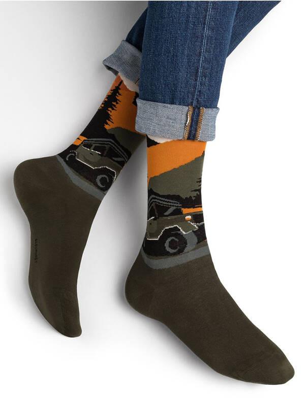 Ces chaussettes présentent un design unique de roadster 4x4, parfait pour ajouter une touche d'aventure à n'importe quelle tenue. La coupe confortable les rend adaptées à un usage quotidien.