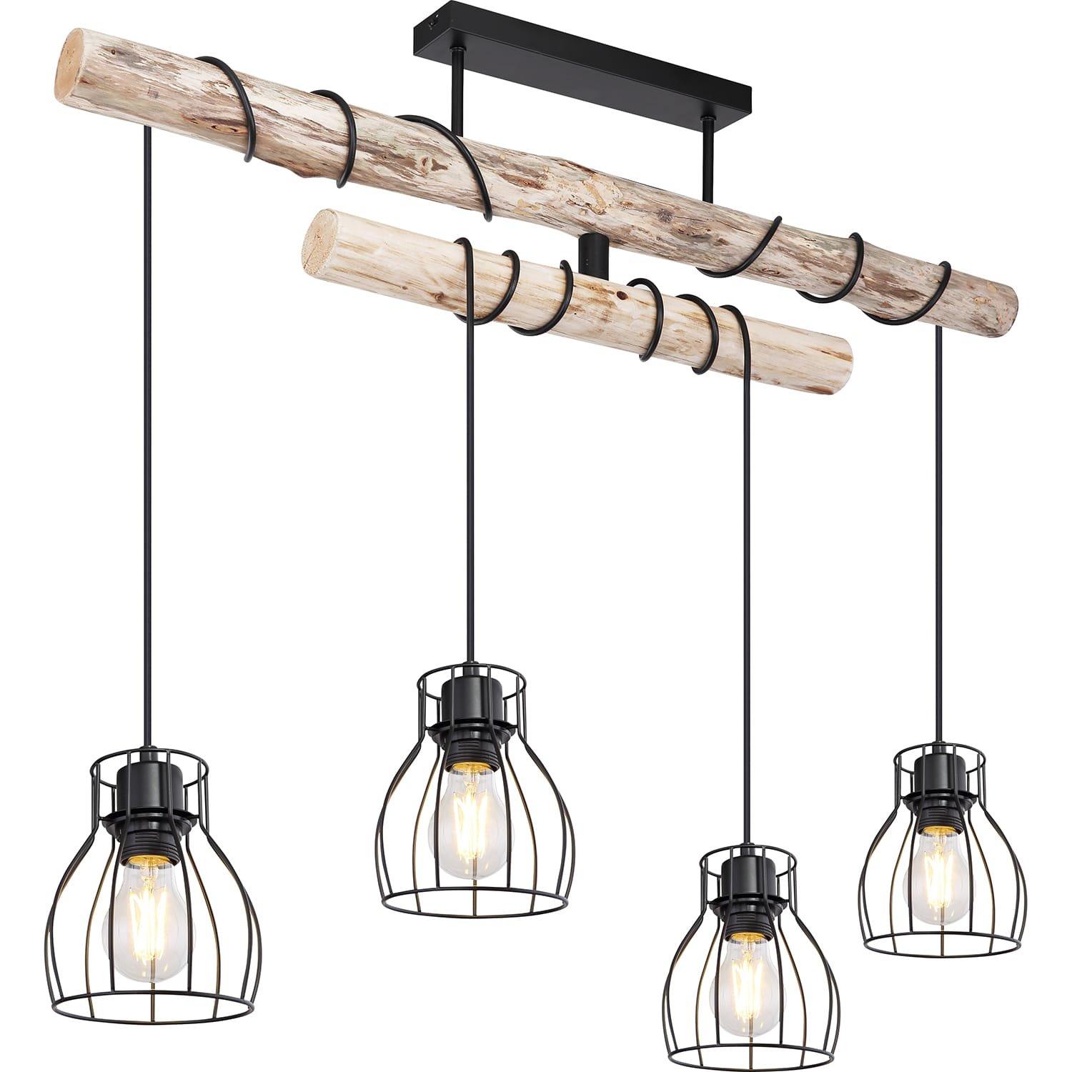C'est le plafonnier extravagant et élégant MINA en métal noir, qui fait bonne figure dans presque toutes les pièces. Le bras de la poutre en bois peut être tourné afin que la lumière puisse briller dans n'importe quel coin souhaité de la pièce. Il y a quatre douilles E27 sur les poutres en bois suspendues, qui sont entourées d'un abat-jour rond en forme de treillis. En choisissant librement la source lumineuse (4 x E27 / max. 60W), vous pouvez déterminer vous-même l'intensité lumineuse et la couleur de la lumière de cette lampe d'intérieur. En raison de leur longévité, nous recommandons les lampes LED. Avec d'autres modèles de cette série, vous pouvez encore améliorer l'apparence de votre espace de vie.
