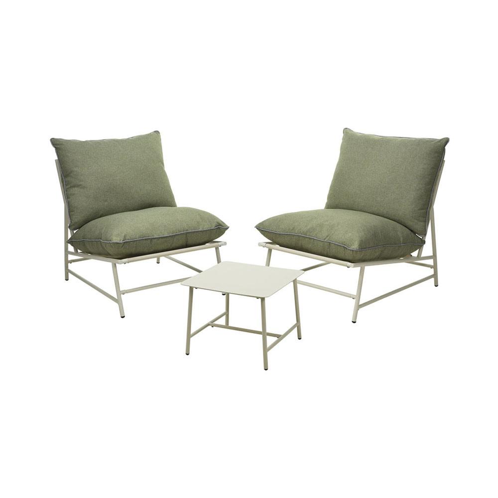 Installe-toi confortablement - avec cet ensemble de meubles de jardin en 3 parties de FS-STAR en crème élégant ! Deux fauteuils confortables en acier avec un tissu Sling perméable à l'air et des coussins verts moelleux t'invitent à te détendre. La table assortie offre de la place pour des boissons, des snacks ou ton livre préféré. Grâce à sa surface revêtue par poudre, l'ensemble est résistant aux intempéries, stable et facile à entretenir - idéal pour le balcon, la terrasse ou le jardin. Sa taille compacte en fait un choix parfait même si l'espace est limité. Les coussins sont agréablement rembourrés et emballés sous vide pour que tout arrive bien chez toi. Il suffit de l'installer et de commencer à se relaxer - ton été peut arriver !