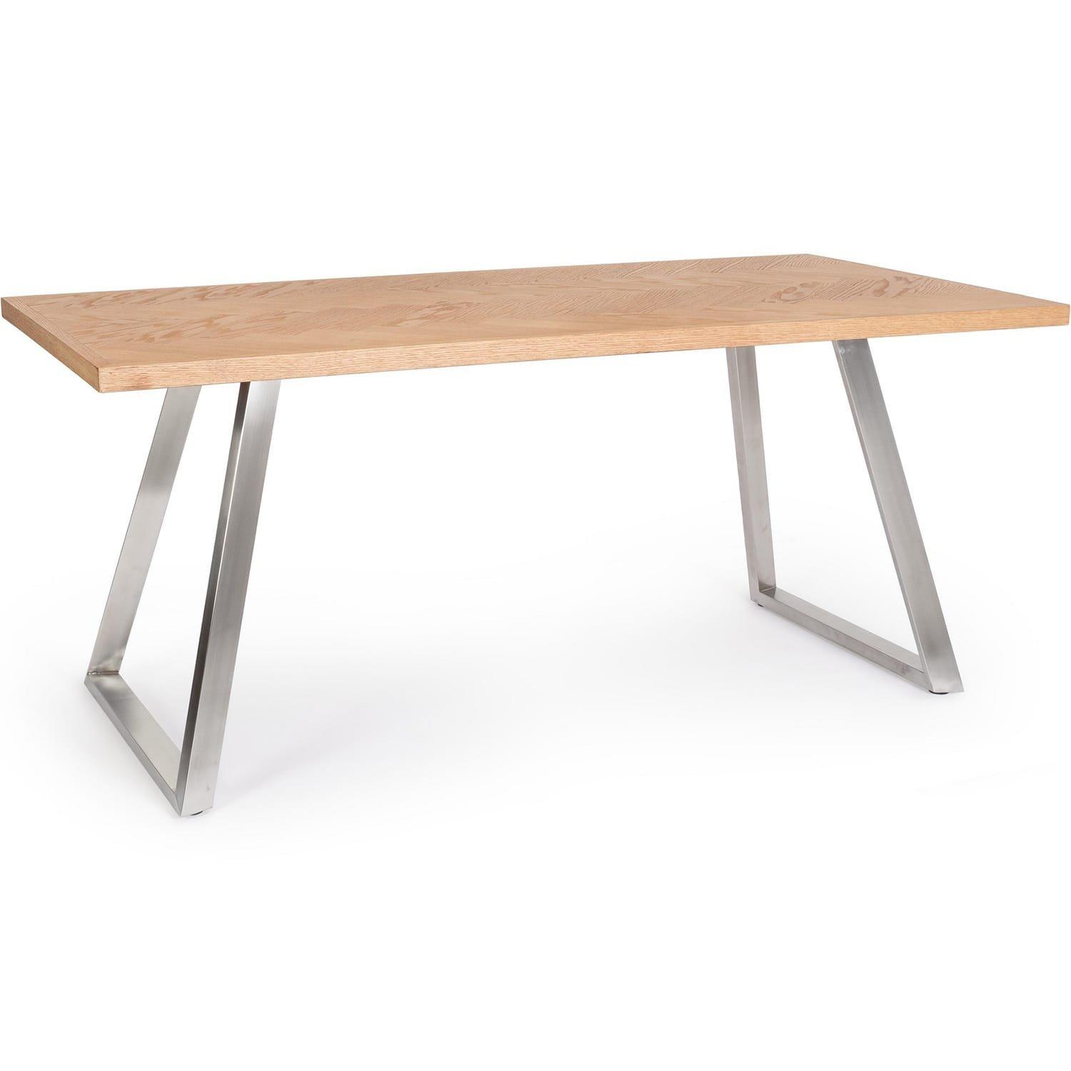 Table en MDF et acier, couleur naturelle, 180 x 90 x 76hPieds réglablesPlateau de table plaqué en MDFPieds en acier avec revêtement époxydiqueFinition en vernis polyuréthanePieds à monter