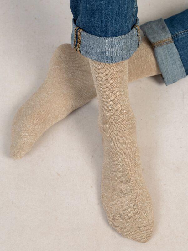 Ces chaussettes sont fabriquées à partir d'un mélange de lin et de coton, offrant une option confortable et respirante pour un usage quotidien. Les fibres naturelles procurent une sensation douce sur la peau. Les chaussettes en lin deviennent encore plus douces à chaque lavage.