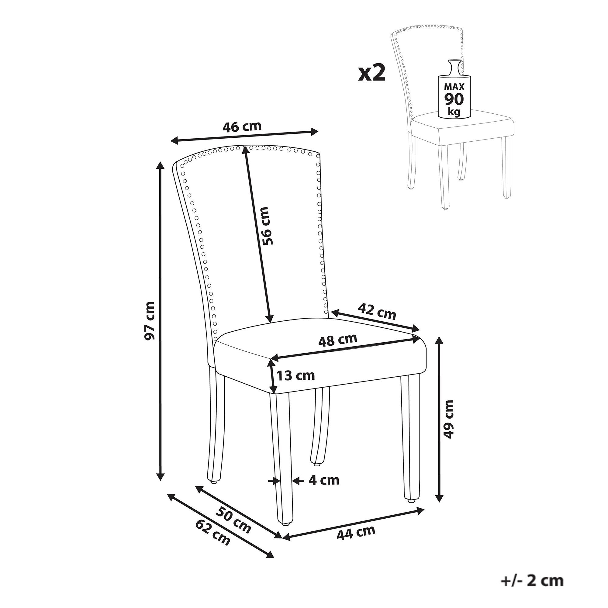 Loffre inclue:</b> 2 x Chaise<br> <br><b>Caractéristiques clés:</b> Modèle à haut dossier et assise épaisse, Finition soignée des boutons , Style élégant, Tissu soyeux et velouté, Patins pour le pieds assurent la protection contre les rayures<br> <br><b>Informations dassemblage: Assemblage partiel requis. 20 - 40 min