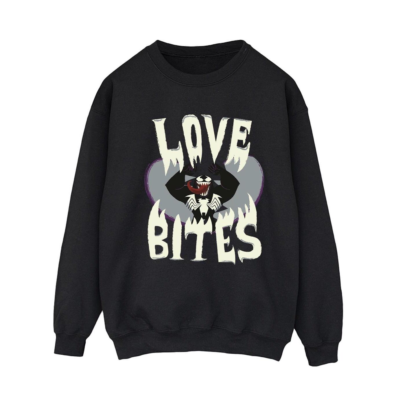 Ce sweat-shirt présente un imprimé graphique ludique avec le texte « Love Bites » et un personnage stylisé. Il est conçu pour le confort et une coupe décontractée, ce qui en fait un ajout polyvalent à toute garde-robe décontractée.