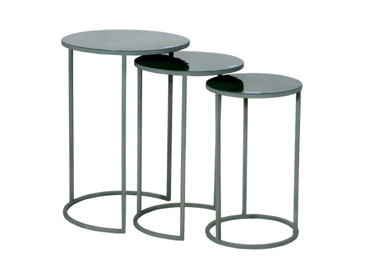 Set de 3 tables d'appoint "Green Club" - un trio élégant en fer laqué vert en différentes tailles.LxPxH : 42x42x60 cmLxPxH : 35x35x55 cmLxPxH : 30x30x50 cm