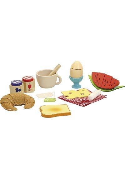 Un set de petit-déjeuner avec tout ce que le cur désire : croissant, toast, thé, uf, fromage, melon et confiture. Le jeu de rôle est livré dans un bel emballage - presque réel, comme frais du marché ! 12 pièces, à partir de 2 ans, en bois et feutre. Taille : 23x5x20.5cm