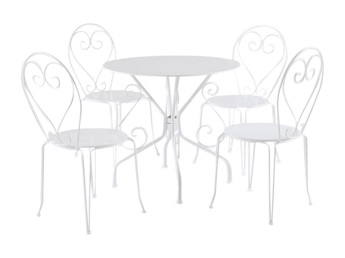 Vente-unique Salle à manger de jardin en métal façon fer forgé une table 4 chaises empilables GUERMANTES