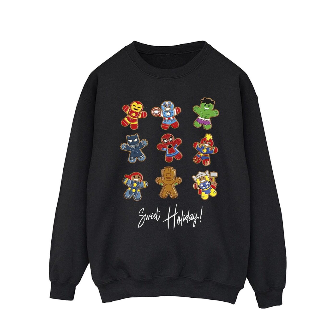 Ce sweatshirt présente un design festif avec des versions en pain d'épices des personnages populaires des Avengers. Le graphique ludique ajoute une touche de joie des fêtes à une silhouette classique à col rond, en faisant un ajout amusant à toute garde-robe décontractée.