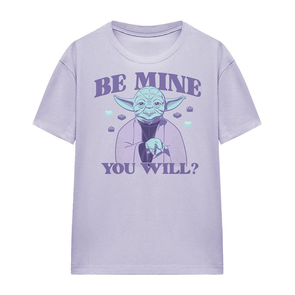 Ce T-shirt présente un imprimé graphique ludique de Yoda avec la phrase « BE MINE YOU WILL? ». C'est un ajout confortable et élégant à toute garde-robe décontractée.