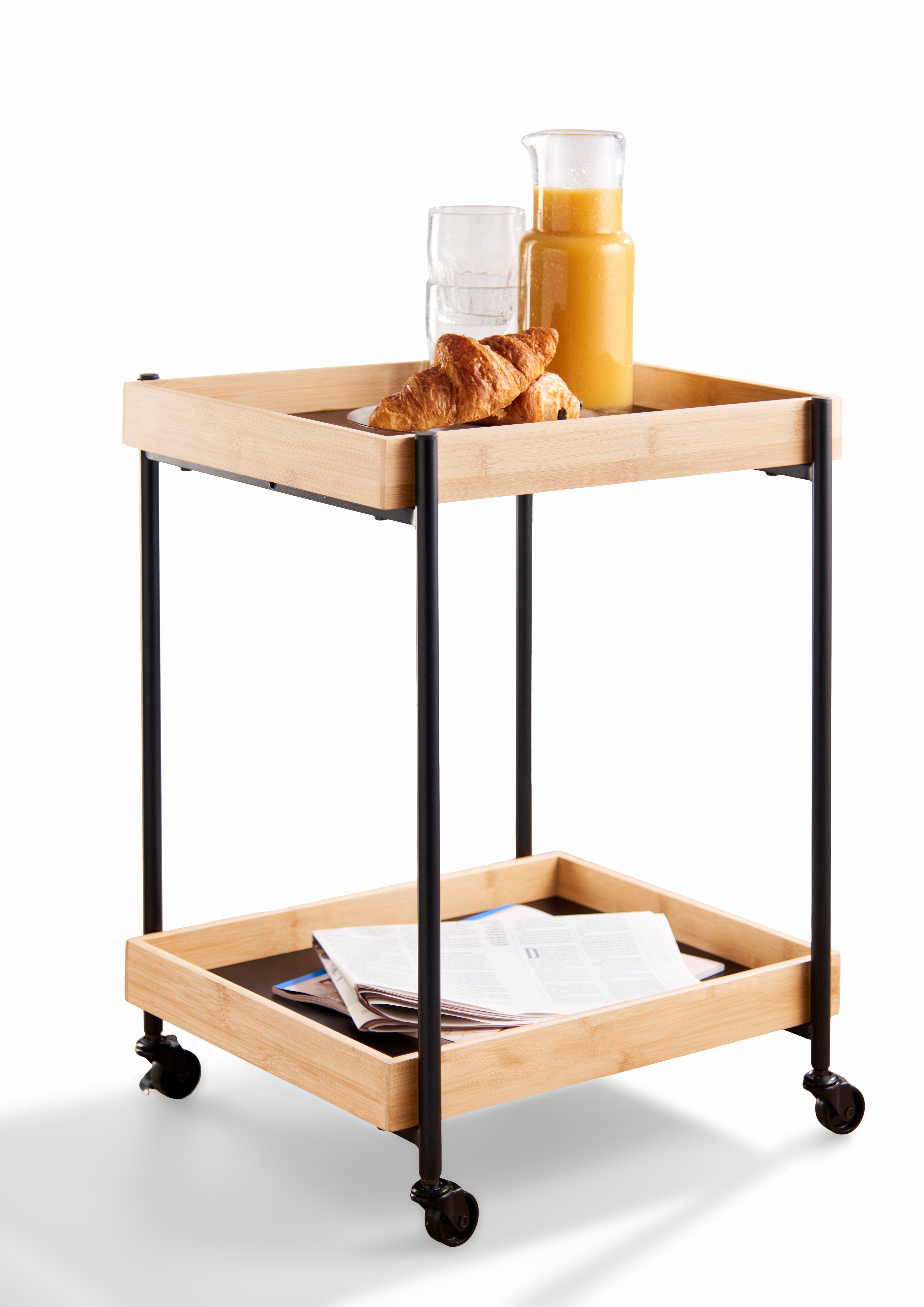 Les deux plateaux offrent suffisamment d'espace pour de nombreux articles différents tels que des livres, des boissons, des collations ou d'autres choses que vous souhaitez transporter confortablement d'une pièce à l'autre. La distance entre les plateaux de 40 cm est suffisamment grande pour transporter des objets plus volumineux, mais suffisamment petite pour que le chariot reste compact et pratique.