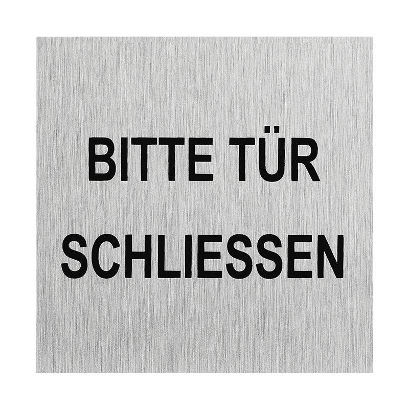 Plaque de porte en aluminium Bitte Tür schliessen 60x60mm
