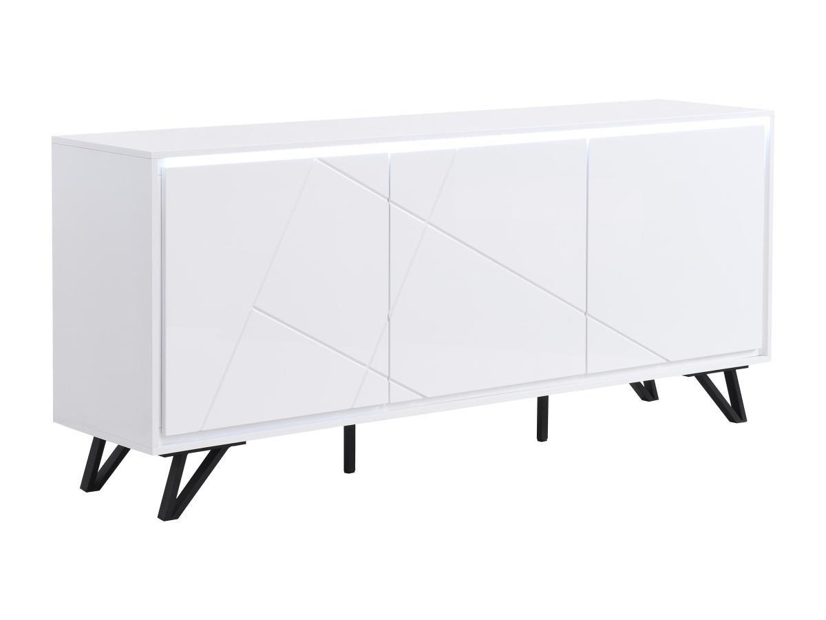 Vente-unique, Buffet 3 portes avec LEDs en MDF - Blanc laqué - SALIANO