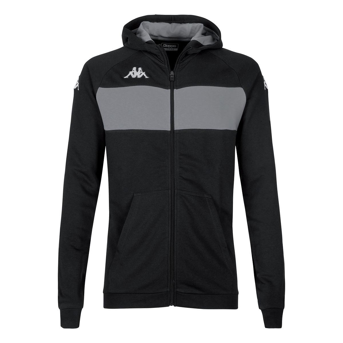 Sweat d'entraînement pour homme 65% coton 35% polyester, SLIM FITManches longues, capuche, poches latérales, fermeture zippée, bande colorée sur le devant, omini sur le poitrine et les manches
