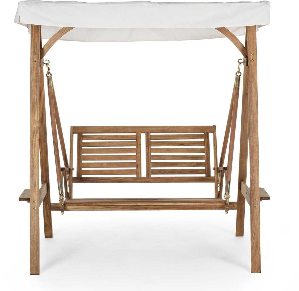 Balancelle hollywoodienne avec structure en bois d'acacia avec surface huilée. Toile en polyester. Vis en acier galvanisé à chaud.Dimensions de l'assise : 119a - 95b cm.