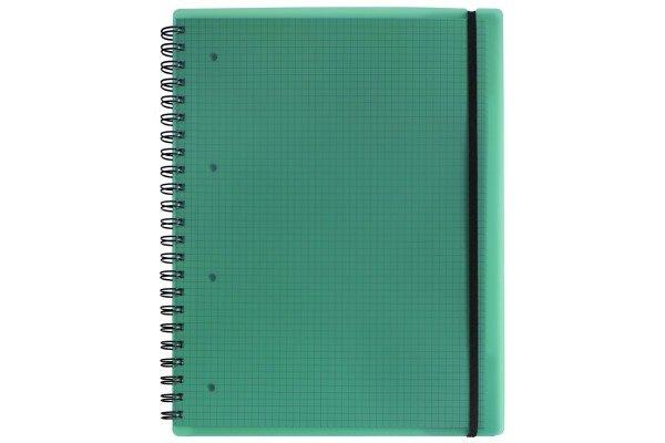 EASY - Notebook A4 KolmaFlex Das Notebook im Format A4 beinhaltet 100 Blatt 70 g/m2 kariert. Die Blätter sind perforiert und 4-fach (3x80mm) gelocht. Somit können Sie Ihre Notizen jederzeit aus dem Notebook nehmen und in ein Zeigebuch ablegen. Im Hinterdeckel ist eine Sammelmappe integriert, damit Sie auch loses Papier verstauen können. Das Notebook wird mit einem Elastband verschlossen. Der trendige Einband ist aus stabilem KolmaFlex Material. Bringen Sie Farbe in Ihren Alltag!
