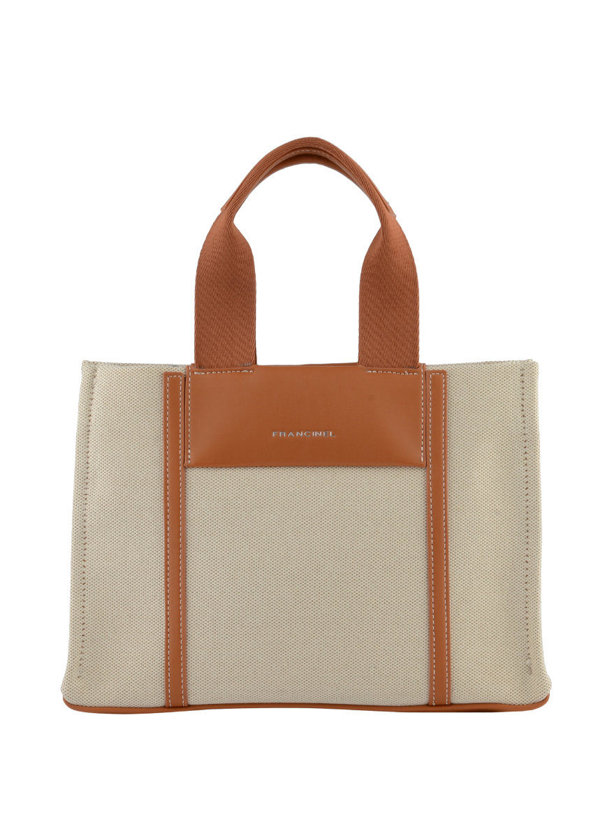 Le sac à main Rosalie de Francinel est conçu pour un usage quotidien, des événements ou le bureau. Ce sac est caractérisé par un style raffiné et élégant, avec une doublure en polyester et un dessus en synthétique. Les poignées en tissu robustes sont attachées à l'ouverture supérieure du sac, offrant une main libre pour les achats ou les réunions. La couleur beige est idéale pour une utilisation quotidienne, tandis que les accents en cuir brun ajoutent une touche de sophistication. Le sac mesure 29 x 21 x 10 cm, offrant suffisamment d'espace pour les documents, les objets personnels et les accessoires. La conception simple et élégante de ce sac en fait un accessoire parfait pour les occasions formelles ou informelles.