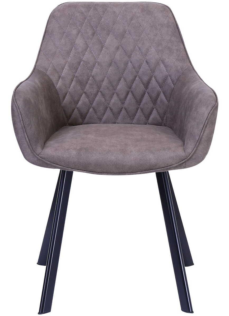 2 chaises avec accoudoirs recouvertes de microfibre avec surpiqûres en losange 100% polyester.Pieds de chaise en métal noir revêtu par poudre