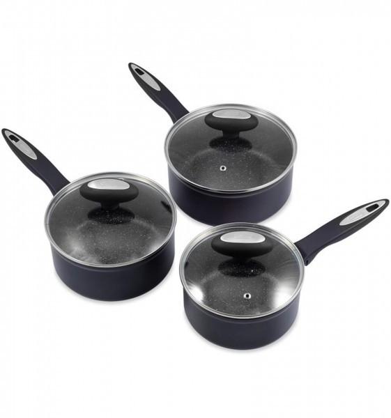 Matériau : Aluminium, type de casserole : Ensemble de casseroles, plaques de cuisson compatibles : Gaz, Halogène, Électrique, Four, Induction, Gril, Céramique vitrocéramique, Revêtement antiadhésif : Oui, couleur détaillée : Noir, Lavable au lave-vaisselle : OuiDiamètre : 16 cm/18 cm/20 cmVolume : 1,5 l (petite casserole), 2 l (casserole moyenne) et 2,6 l (grande casserole)Lavable au lave-vaisselle, résistant au fourFabriqué en aluminiumPlaques de cuisson compatibles : Four/Électrique/Gaz/Céramique vitrocéramique/Gril/Halogène/InductionAvec revêtement antiadhésif tripleContenu de la livraison :Ensemble composé de :Casserole, 16 cm, 1,5 litreCasserole, 18 cm, 2 litresCasserole, 20 cm, 2,6 litres