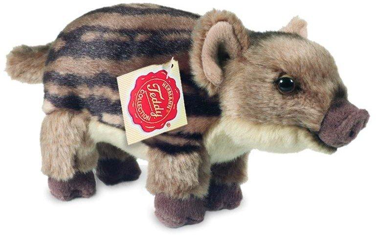 Wildschweinfrischling 22 cm aus der Teddy Hermann Collection aus hochwertigem Plüsch gefertigt und mit weicher Polyesterwatte gefüllt. 30 Grad waschbar, Schonwäsche. Nicht in den Trockner.