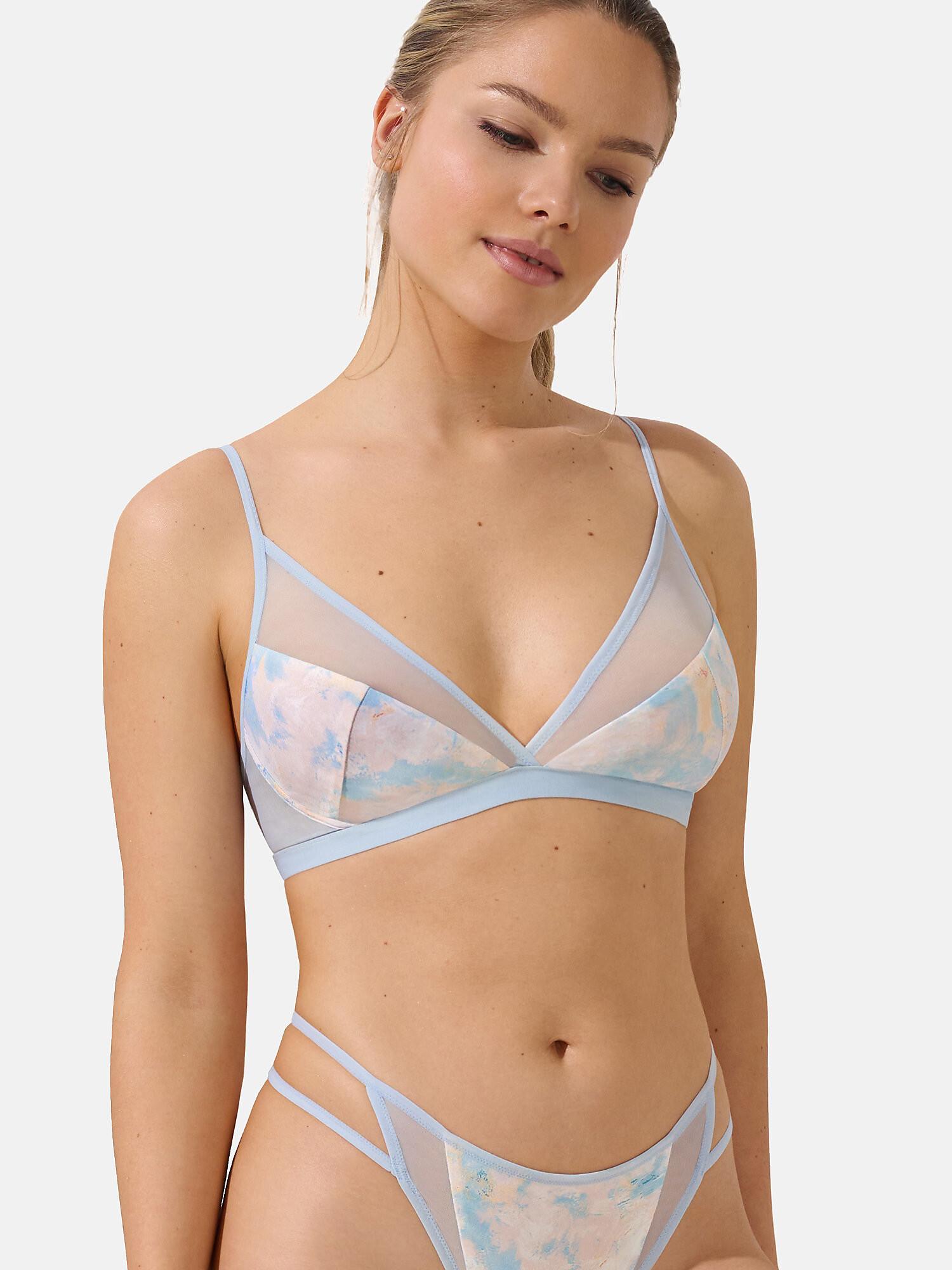 Cette lingerie moderne et jeune présente un imprimé abstrait rappelant des coups de pinceau dans des tons roses et bleus, ce qui lui confère une touche vibrante et jeune. La combinaison de la maille et du tulle crée un look moderne et décontracté, mais aussi élégant. Cette lingerie pratique et facile à porter convient au quotidien et assure le confort tout en conservant un style contemporain. Cette série combine le meilleur des deux mondes – la mode et la fonctionnalité – et offre une élégance jeune avec une touche d'art.