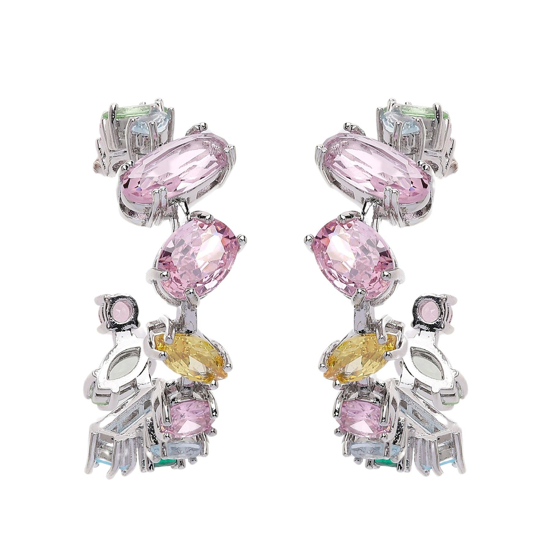 Ces boucles d'oreilles créoles fantaisistes présentent un assortiment ludique de pierres aux teintes pastel, serties sur une monture métallique texturée. Leurs formes irrégulières et leurs couleurs variées créent un style bohème charmant. Dimensions : 1,3 cm x 3,6 cm | Placage : Rhodium | Fermoir : Tige et fermoir