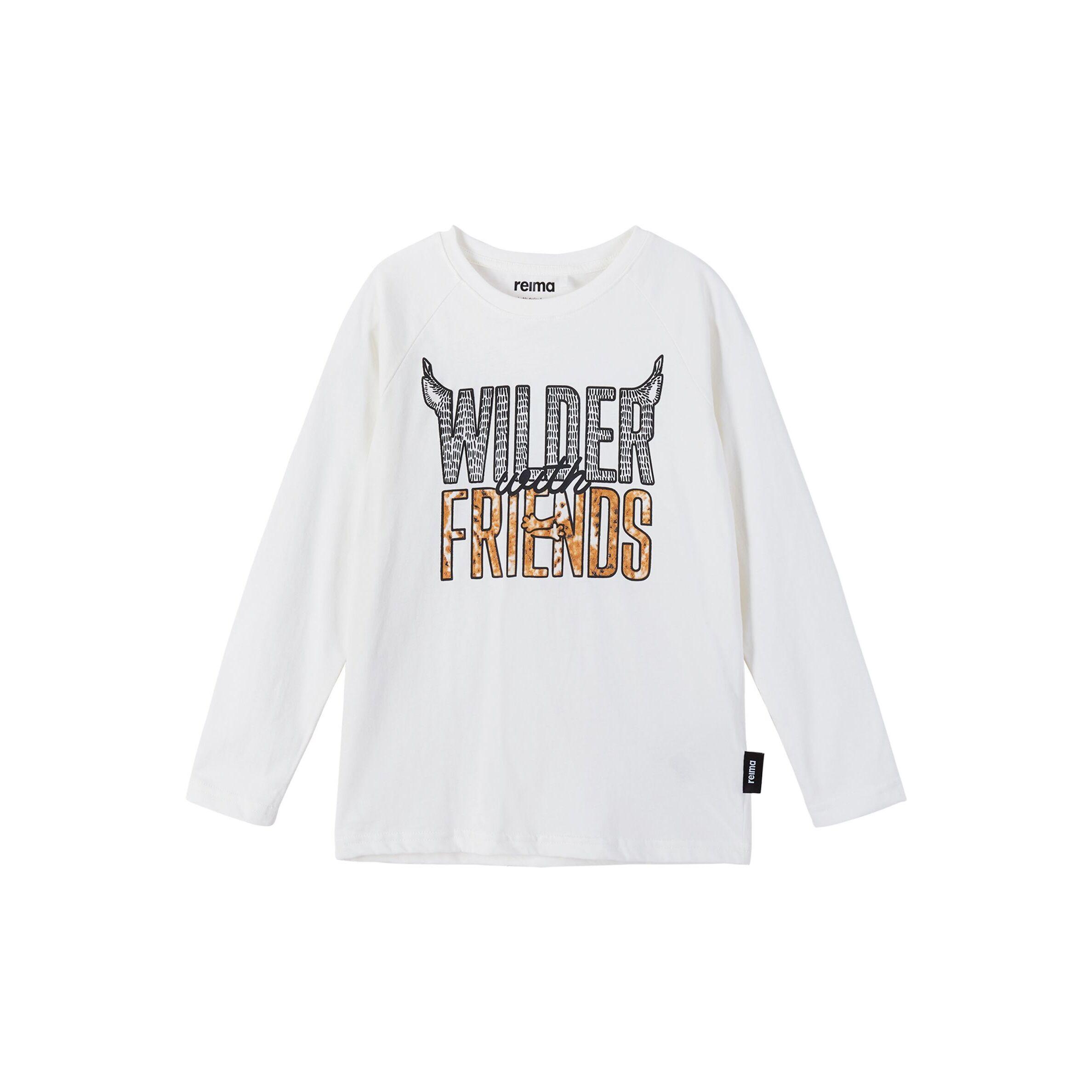 T-shirt pour enfants à manches longues, fabriqué en coton biologique à 100 %. Un t-shirt pour enfants sur le thème des animaux, avec le slogan "Wilder With Friends". Fabriqué en 100% coton biologique, ce tee-shirt Reima confortable présente des manches longues décontractées. Le coton biologique est extrêmement respirant grâce à ses fibres naturelles et légères. Votre enfant se sentira bien et confortable même s'il a transpiré un peu. T-shirt junior Coton biologique doux et confortable Le coton de ce produit est certifié biologique Décoration imprimée sur le devant