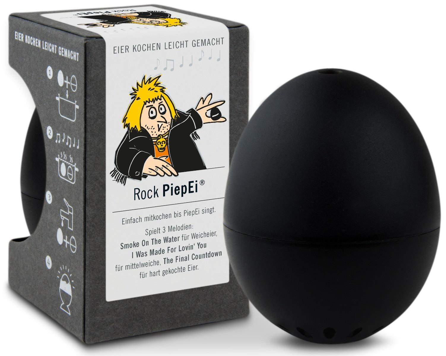 Facile à utiliser : conservez PiepEi avec les œufs, faites-les cuire ensemble dans la marmite et attendez que PiepEi joue la bonne mélodie. Maintenant, trempez les œufs et le PiepEi ensemble et dégustez l'œuf parfaitement cuit.Trois mélodies pour trois niveaux de dureté : qu'il soit doux, mi-doux ou dur, PiepEi joue une mélodie différente pour chaque niveau. "SMOKE ON THE WATER" pour les œufs à la coque, "I WAS MADE FOR LOVIN' YOU" pour l'œuf mi-doux parfait et "THE FINAL COUNTDOWN" une fois l'œuf dur prêt.Idée cadeau fonctionnelle : Un joli cadeau pour toute occasion. Vous fait sourire et a une fonction intelligente. Le cuiseur à œufs parfait !Plus qu'une simple minuterie : PiepEi est basé sur un modèle thermique. Il est donc IMPORTANT que le PiepEi et les œufs soient conservés ensemble afin que la température initiale soit identique. Peu importe que vous commenciez le processus de cuisson avec de l'eau froide ou bouillante.Fonctionne partout : grâce à la technologie basée sur la température, peu importe le nombre d'œufs que vous cuisinez en même temps. Vous pouvez également cuire différents degrés de dureté en un seul processus de cuisson (ce qui n'est pas possible dans un cuiseur à œufs conventionnel). Retirez simplement les œufs respectifs sur la mélodie appropriée. D'ailleurs, PiepEi fonctionne à toutes les altitudes (l'eau bout à une température différente en montagne).Fabriqué en Allemagne : développé et fabriqué en Allemagne.