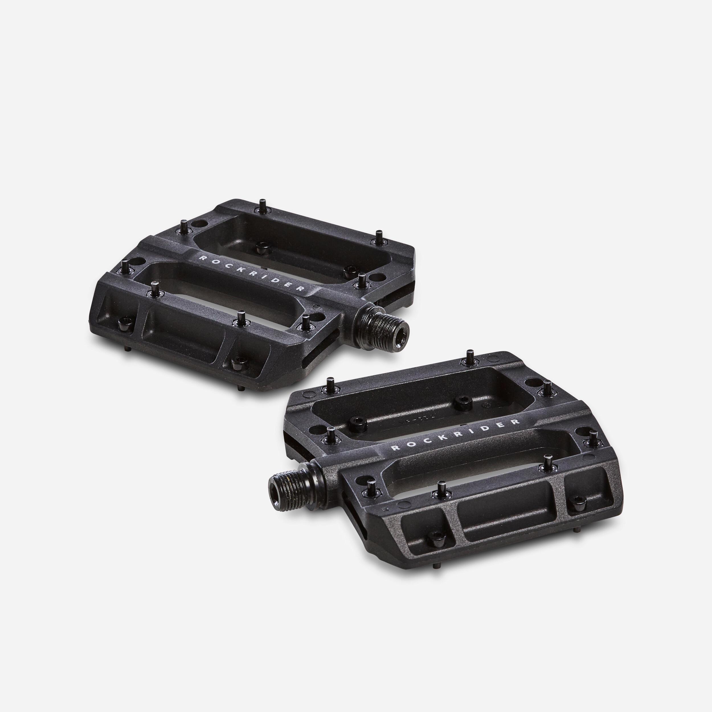 Les pédales VTT 700 en plastique sont idéales pour le VTT électrique, le All Mountain, l'enduro ou le freeride. Grâce à leur large surface d'appui et aux picots en métal, ces pédales offrent stabilité et contrôle du vélo. Elles sont légères et robustes, et conviennent à tous les niveaux. Le montage doit être vérifié par un professionnel. Conseil d'entretien : ne pas laver. Ces pédales sont garanties 2 ans. « Dank der breiten Auflagefläche und der Pins aus Metall bieten die Flachpedale MTB 900 aus Harz Stabilität, tragen zu einer guten Kontrolle des Velos bei und sind dabei gleichzeitig leicht. »