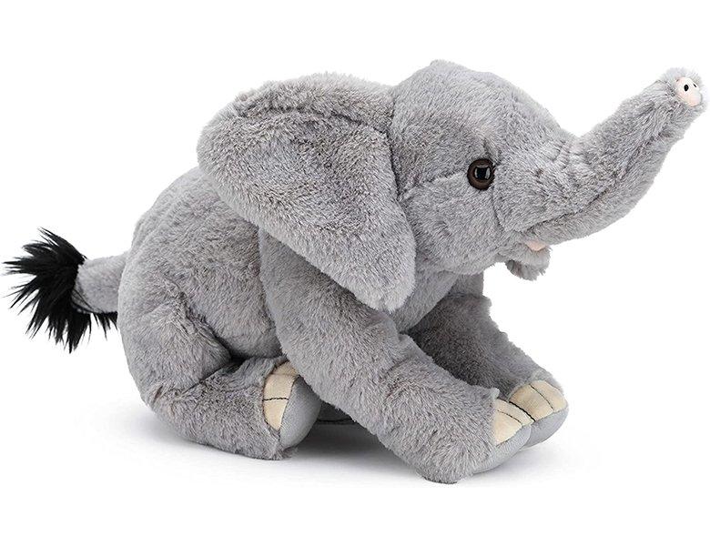 Diese realistische Plüschfigur eines afrikanischen Elefantenbaby misst 25 cm und besteht zu mindestens 90 % aus recyceltem Material. Sie ist ideal zum Kuscheln und Schmusen und bereits für die Kleinsten geeignet.